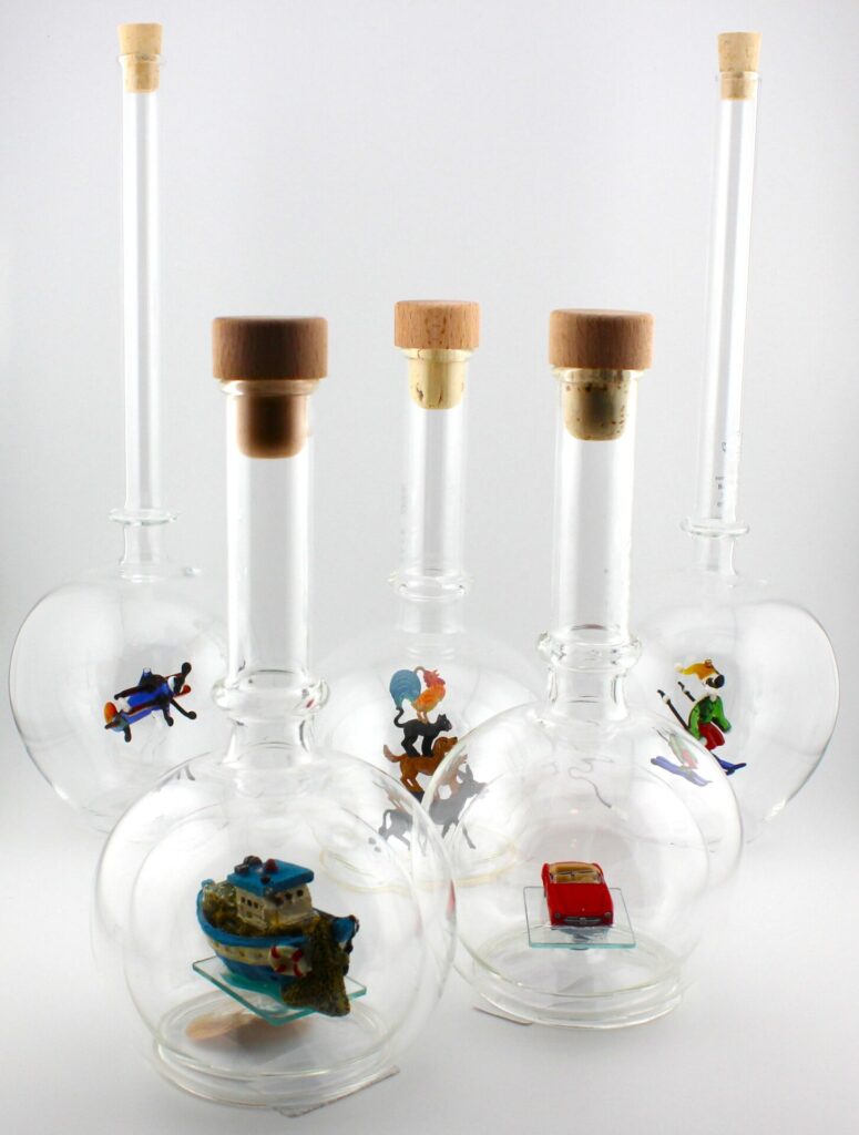 Jede unserer mundgeblasenen Flaschen ist mehr als ein Objekt. Sie ist ein Kunstwerk, handgefertigt mit Leidenschaft, Präzision und Seele. In ihrem Inneren: kleine Welten voller Fantasie, Emotion und Symbolik. Ob romantisch, humorvoll, reiselustig oder sinnlich.